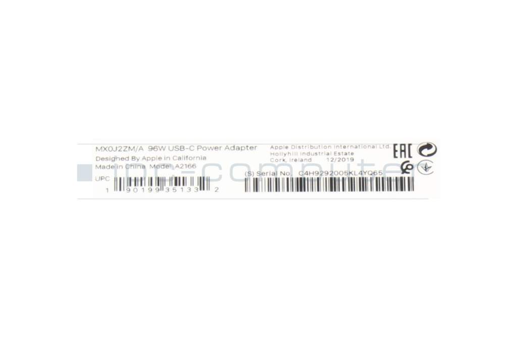 Apple Mac16,13 (15" 2025) Original USB-C Netzteil 96,0 Watt EU Wallplug weiß