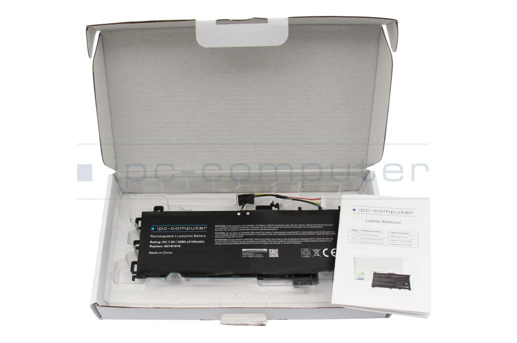 • Gewährleistung & Garantie: Auf alle bei IPC-Computer gekauften Original Notebook-Akkus gilt die gesetzliche Gewährleistung sowie eine Herstellergarantie (gemäß Shopbedingungen).