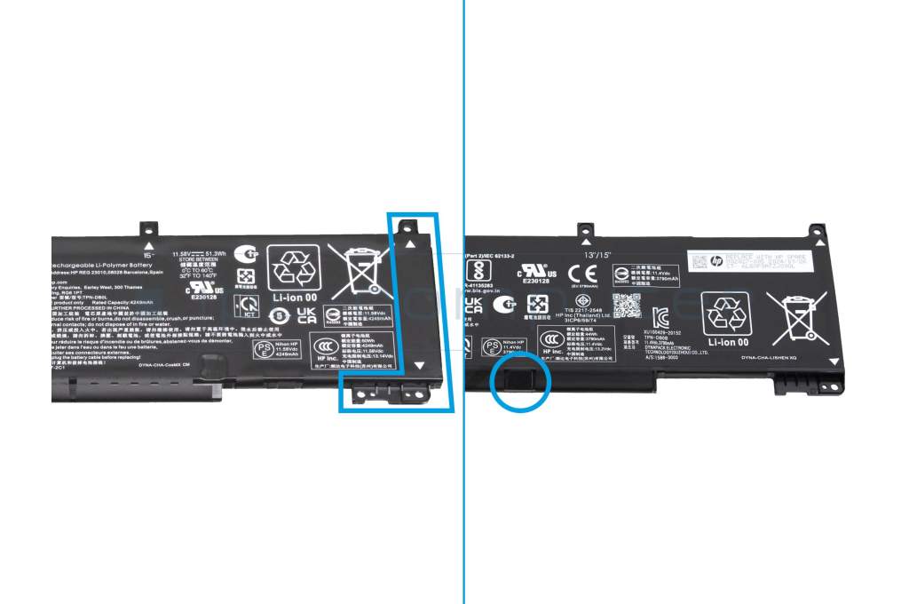 Achtung: Die Typenbezeichnung RH03 wird von HP für Akkus mit unterschiedlicher Bauform verwendet! Bitte vergleichen Sie die gezeigten Bilder mit Ihrem aktuell verbauten Akku. Dieser Akku ist nur für 15" Geräte passend.