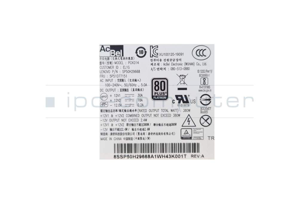 Lenovo ThinkCentre M70s Gen 3 (11V8) Original Desktop-PC Netzteil 380 Watt SFF Small Formfaktor, 150x82x70 mm SFF Small Formfaktor, 150x82x70 mm