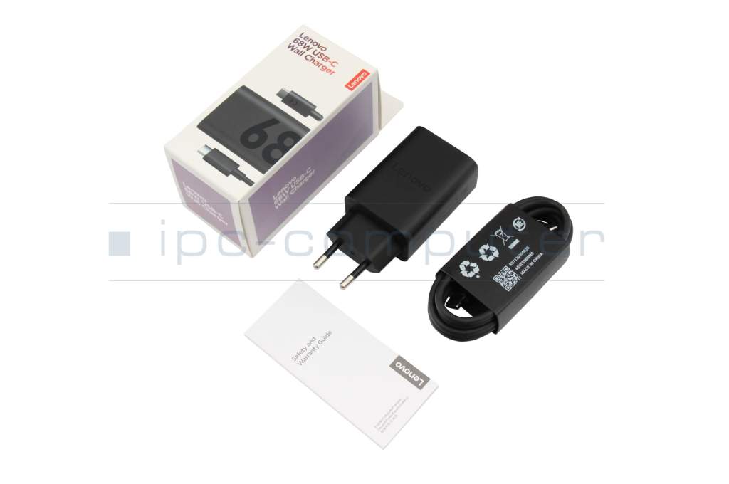 Der Lenovo 68W USB-C Wall Charger ist Lenovo's leistungsstärkstes USB-C Ladegerät fuer alle kompatiblen USB-C Power Delivery (PD) Tablets und Notebooks.