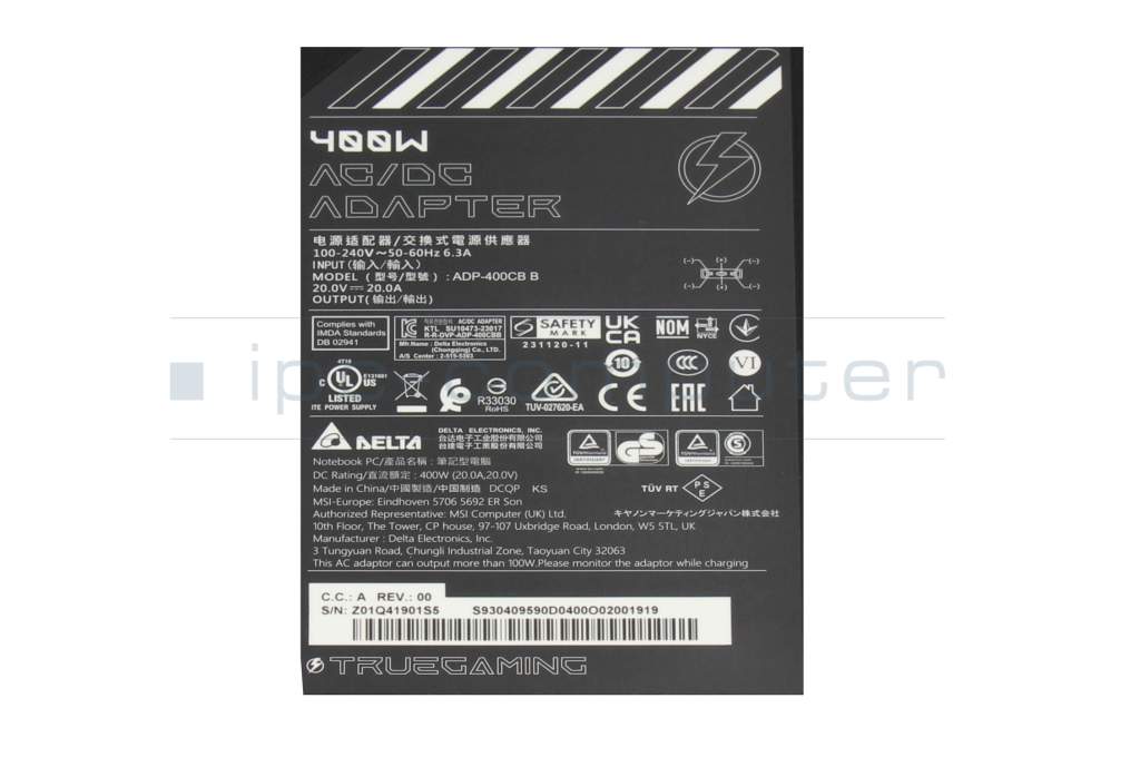 MSI CreatorPro X18 HX A14VMG (MS-1822) Original Netzteil 400,0 Watt kantige Bauform