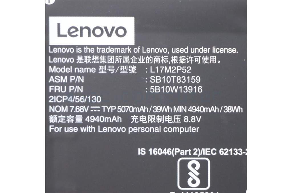 Lenovo 5B10W13916 BATTERY Internal, 2c, 39Wh, LiIon, SMP