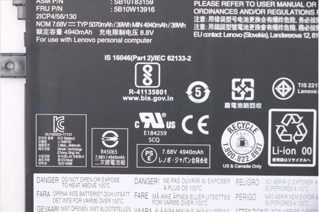 Lenovo 5B10W13916 BATTERY Internal, 2c, 39Wh, LiIon, SMP