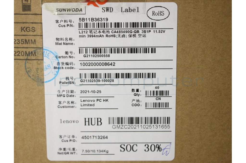 Lenovo 5B11B36319 BATTERY SD/C?L20D3PG0,11.52V47Wh3cell