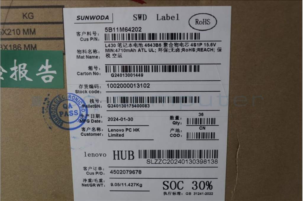 Lenovo 5B11M64202 BATTERY 4cell 75Wh 15.6V L23D4PH0 SD/A