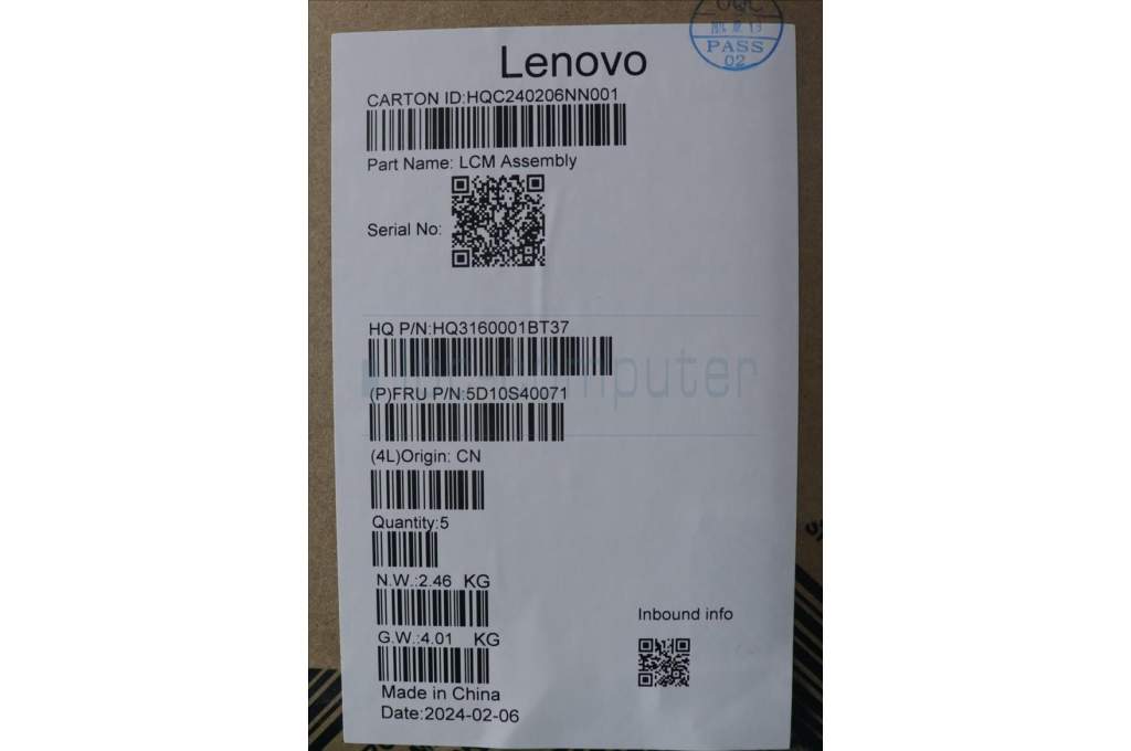 Lenovo 5D10S40071 DISPLAY LCD MODULE H 83DR GL400N FHD CB