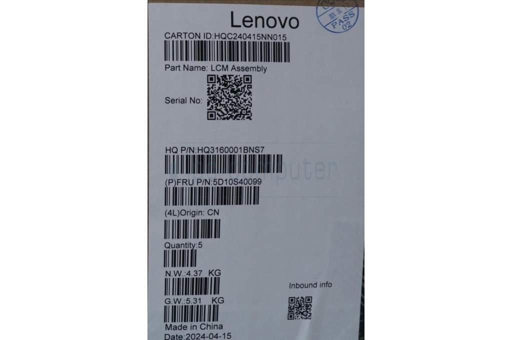 Lenovo 5D10S40099 DISPLAY HUD H 83DS 16_2K_OLED_GL400N_CB