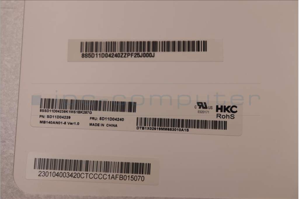 Lenovo 5D11D04240 DISPLAY FRU HK MB140AN01-5 HDT AG