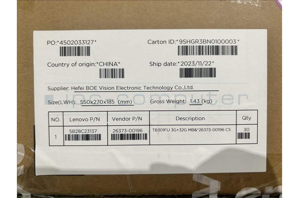 Lenovo 5B28C23137 TB301FU 3G+32G MB&*26373-00196CS