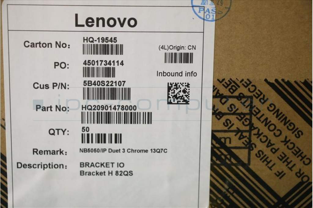 Lenovo 5B40S22107 IO Bracket H 82QS