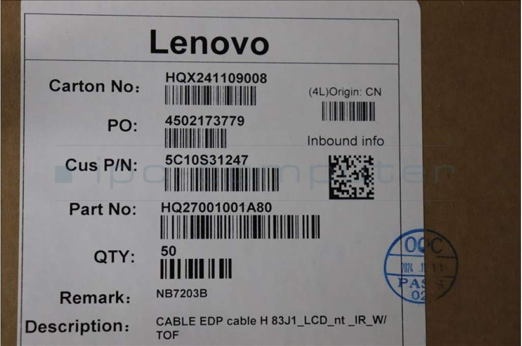Lenovo 5C10S31247 EDP cable H 83J1_LCD_nt _IR_W/ TOF