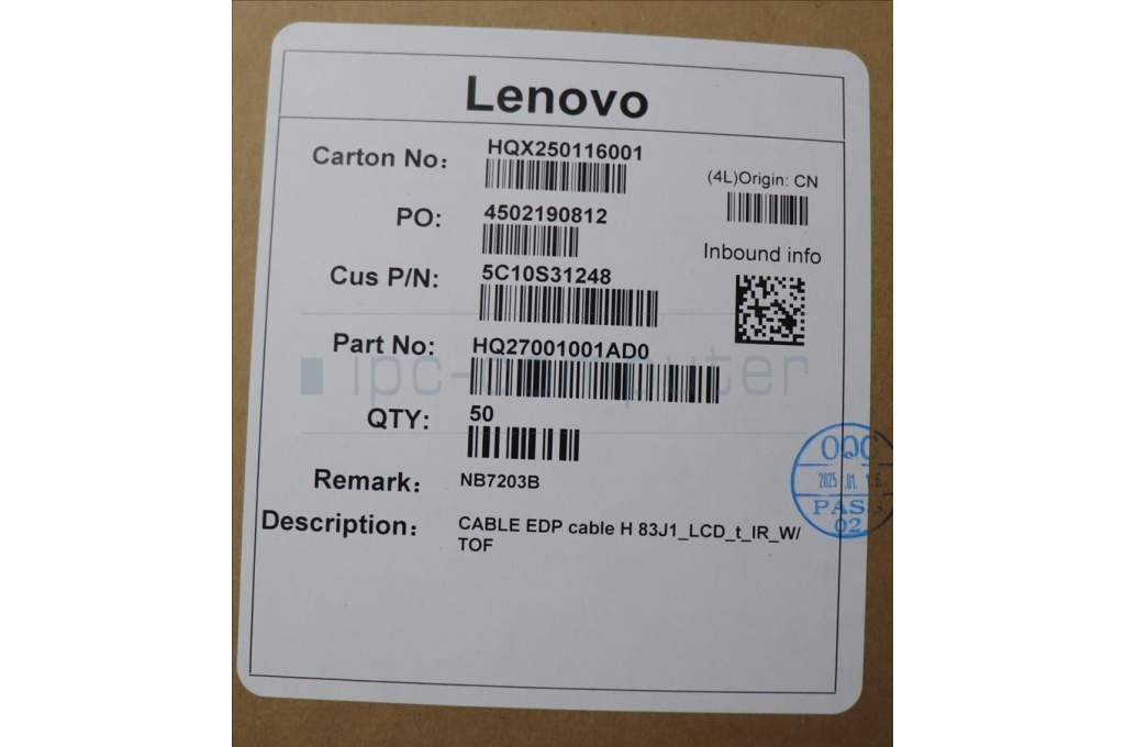 Lenovo 5C10S31248 EDP cable H 83J1_LCD_t_IR_W/ TOF