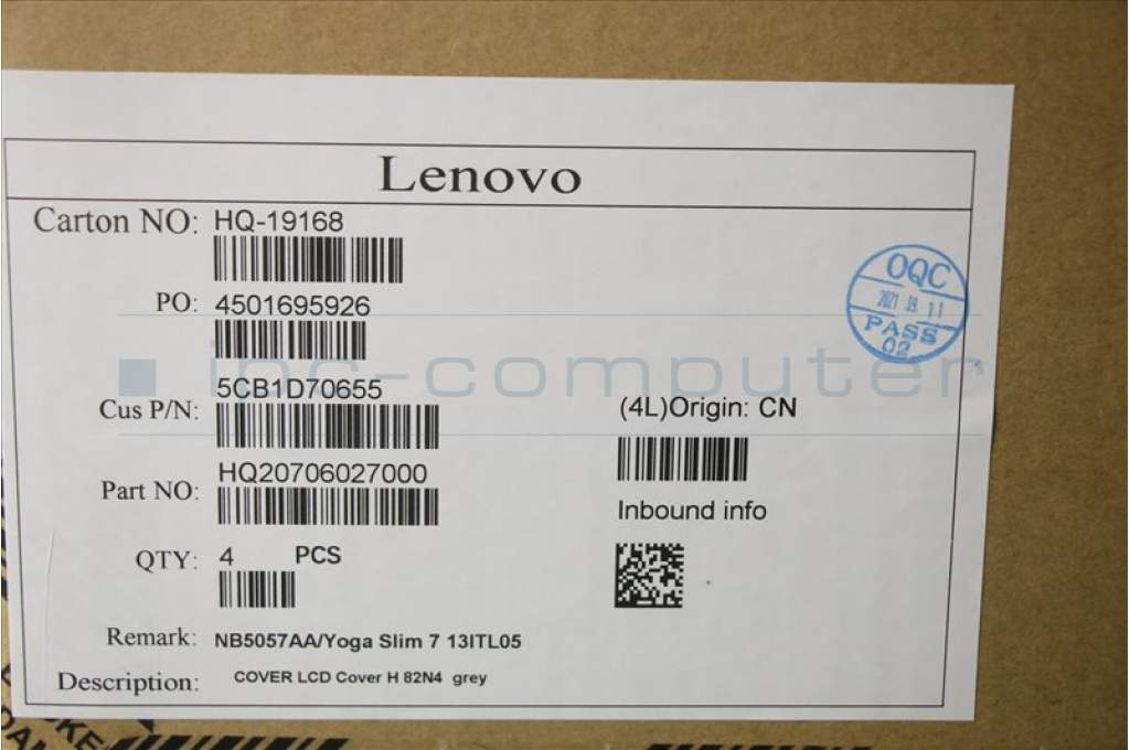 Lenovo 5CB1D70655 COVER LCD Cover H 82N4 grey