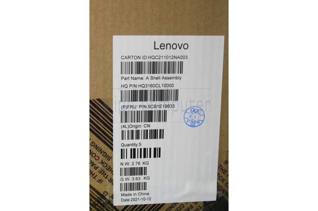 Lenovo 5CB1E19833 COVER LCD Cover H 82QS w/lens Grey
