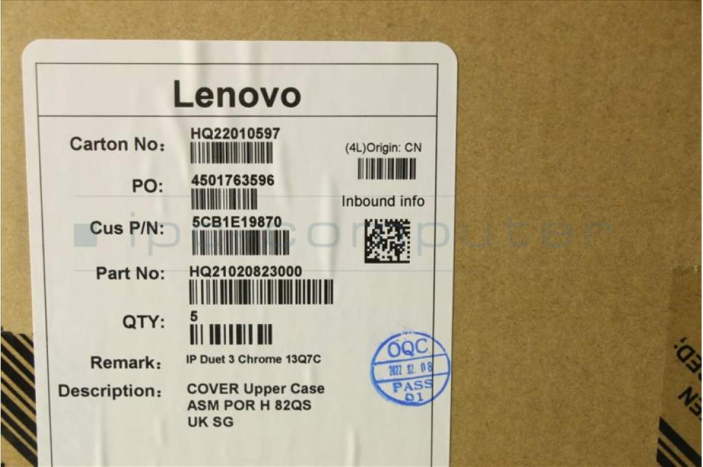 Lenovo 5CB1E19870 COVER Upper Case ASM POR H 82QS UK SG