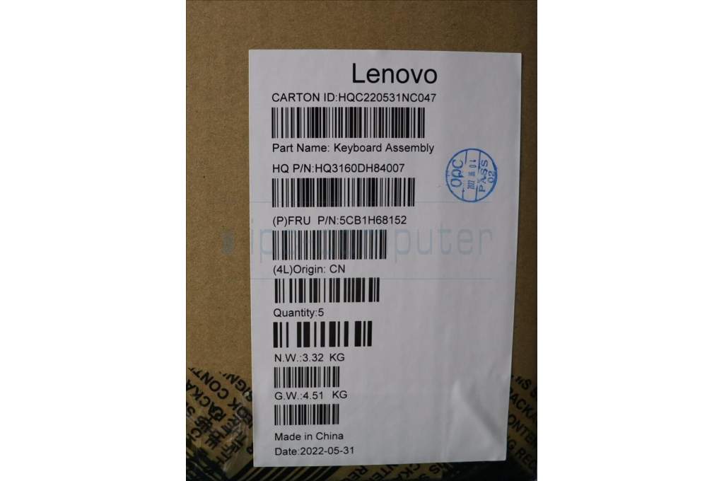 Lenovo 5CB1H68152 C-Cover with keyboard,English,Arctic Grey,Fingerprint