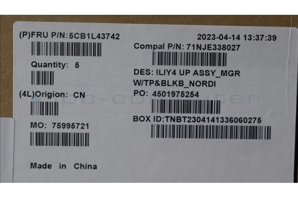 Lenovo 5CB1L43742 C-Abdeckung mit Tastatur, Skandinavien, Mineralgrau, Hintergrundbeleuchtung