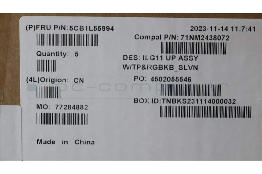 Lenovo 5CB1L55994 C-Abdeckung mit Tastatur, Slowenisch, RGB-Hintergrundbel.