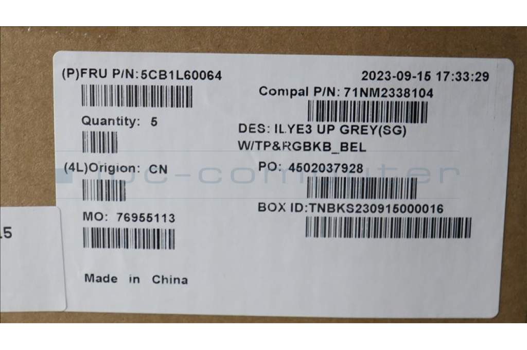 Lenovo 5CB1L60064 C-Abdeckung mit Tastatur, Belgisch, sturmgrau, RGB-Hintergrundbel., GB