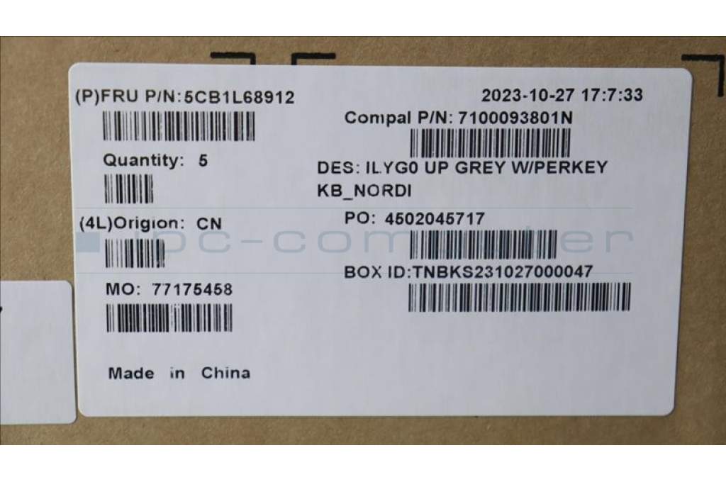 Lenovo 5CB1L68912 C-Abdeckung mit Tastatur, Skandinavien, RGB-Hintergrundbel.