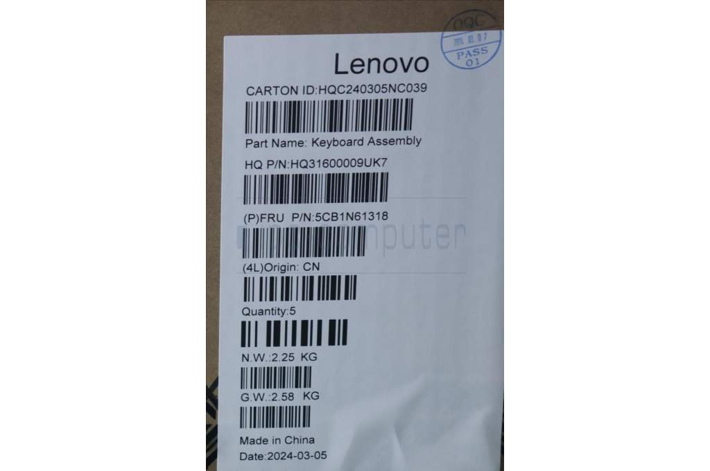 Lenovo 5CB1N61318 C-Cover with keyboard, Slovenian, Luna Grey, w/Storm Grey Keycaps, UK
