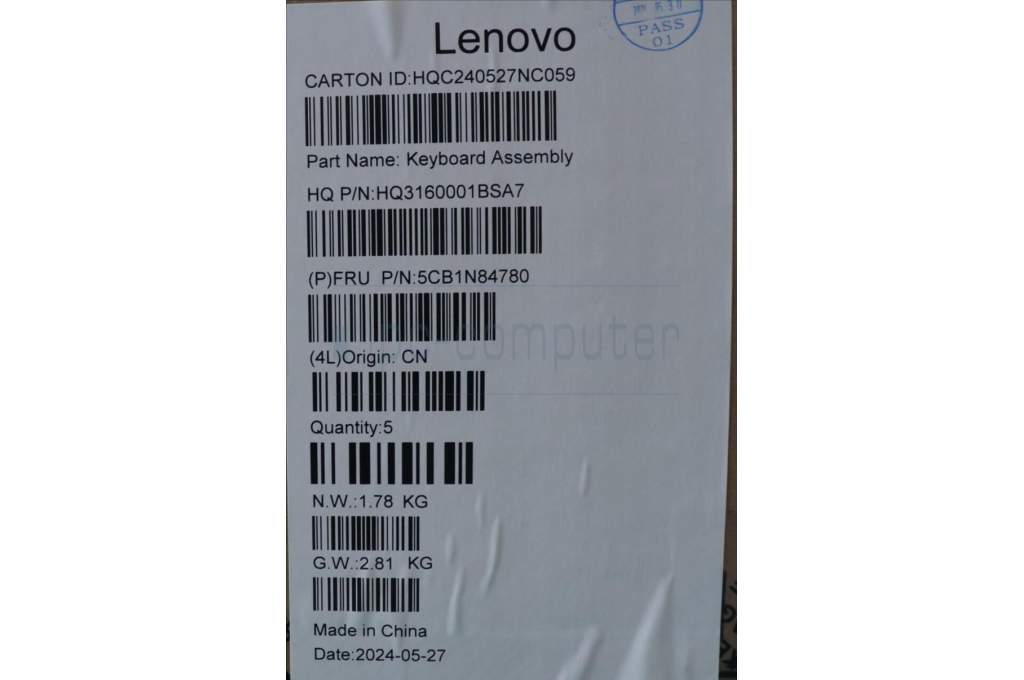 Lenovo 5CB1N84780 C-Cover with keyboard, Italian, Tidal Teal, w/puresight pro logo, UK