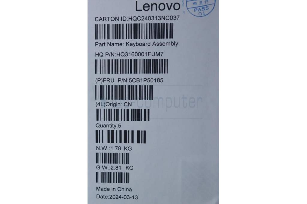 Lenovo 5CB1P50185 C-Cover with keyboard, US English Euro, Tidal Teal, Puresight Logo, US