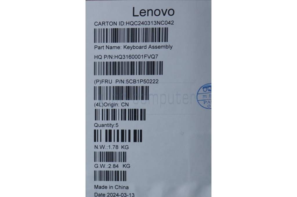 Lenovo 5CB1P50222 Tastatur inkl. Topcase ASM EUROENG H83E2 LG PST