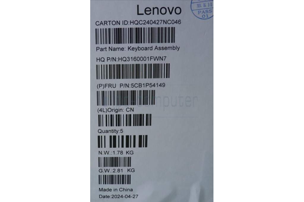 Lenovo 5CB1P54149 C-Cover with keyboard,Switzerland,Luan Grey,Puresight Logo