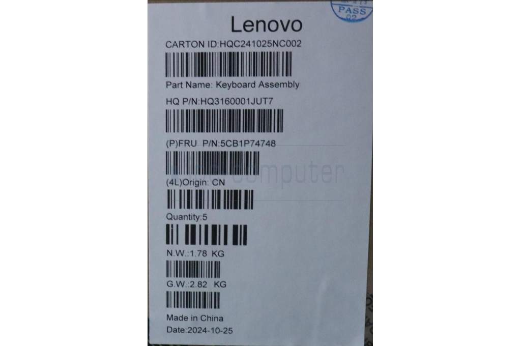 Lenovo 5CB1P74748 C-Cover with keyboard, Belgian, Luna Grey, Puresight Logo, UK