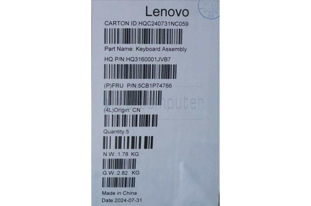 Lenovo 5CB1P74766 C-Cover with keyboard, Nordic, Luna Grey, Puresight Logo, UK