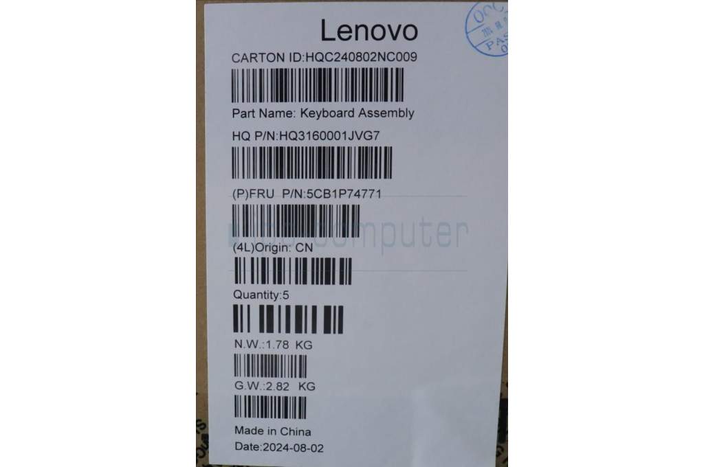 Lenovo 5CB1P74771 C-Cover with keyboard, Switzerland, Luna Grey, Puresight Logo, UK