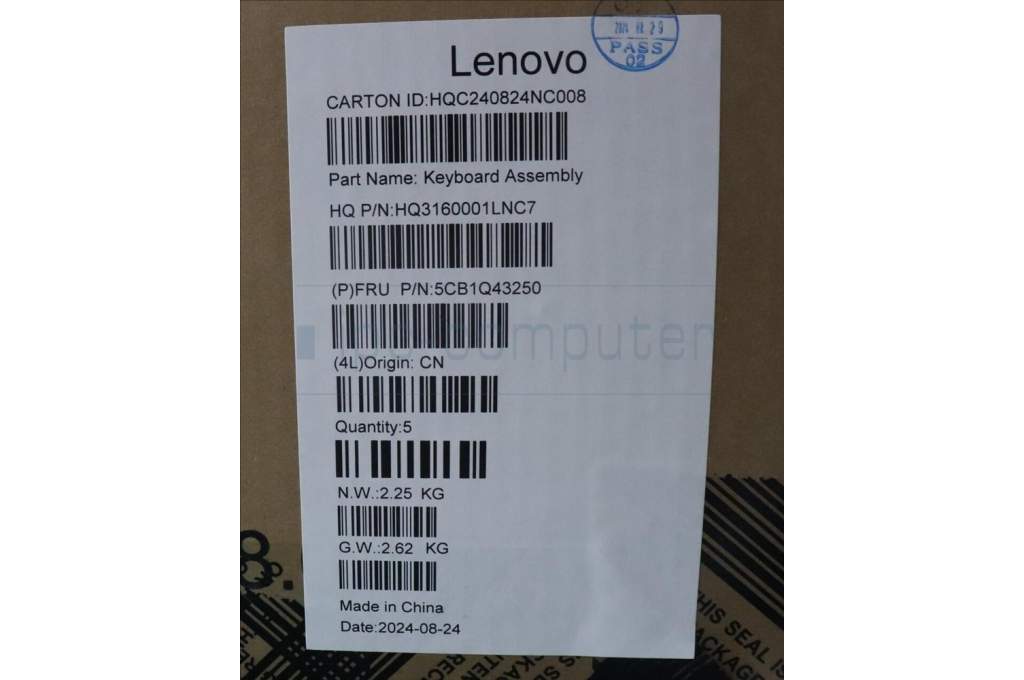 Lenovo 5CB1Q43250 C-Cover with keyboard,Switzerland,Luna Grey,Fingerprint