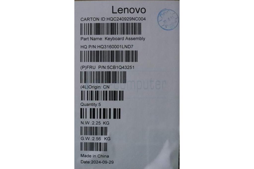 Lenovo 5CB1Q43251 C-Cover with keyboard, US English Euro, Luna Grey, Fingerprint, US