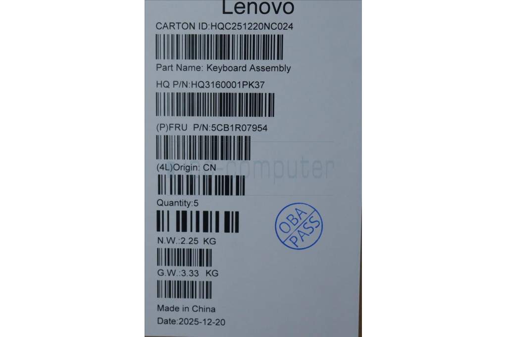 Lenovo 5CB1R07954 C-Cover with keyboard, Switzerland, Luna Grey, Non-Backlight, 4CELL, UK