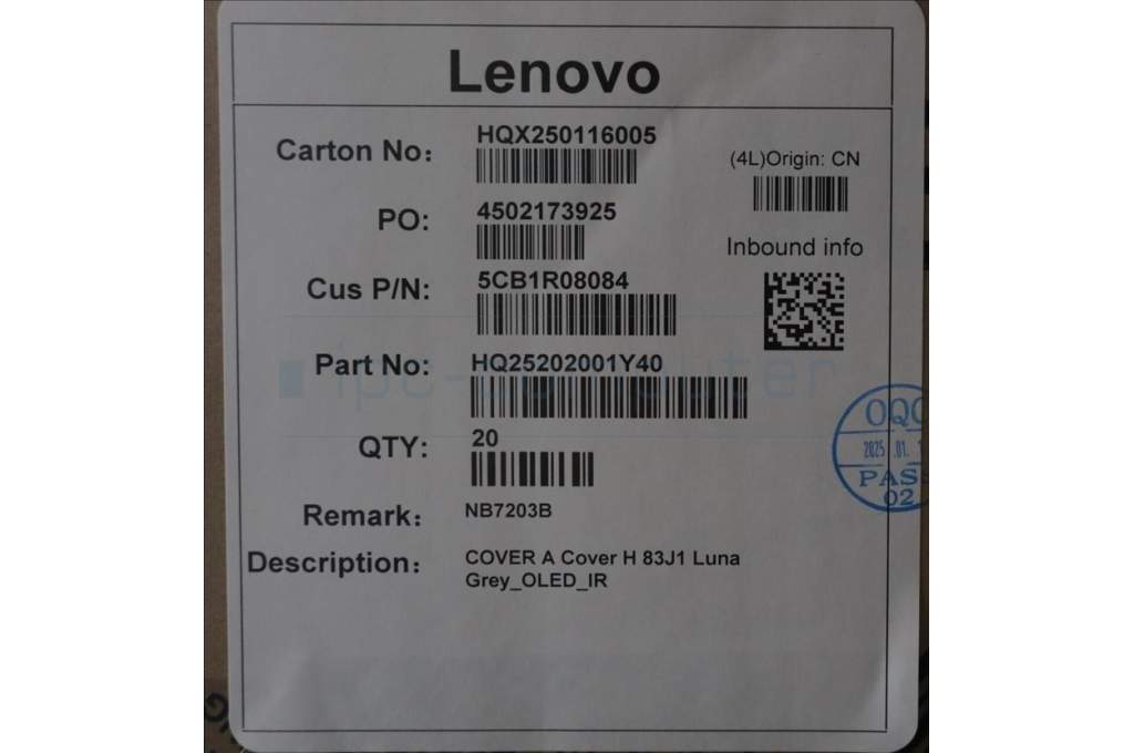 Lenovo 5CB1R08084 A-Cover, 83J1, Luna Grey, OLED_IR