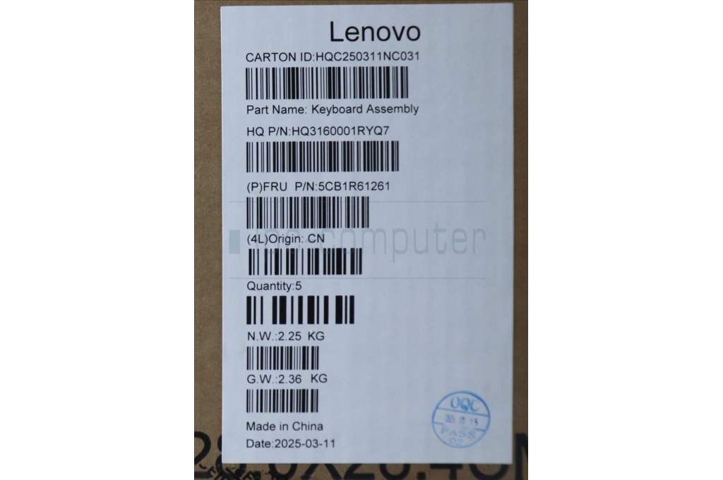 Lenovo 5CB1R61261 C-Cover with keyboard, Norwegian, Luna Grey, Non-FingerPrint, Puresight Logo, UK