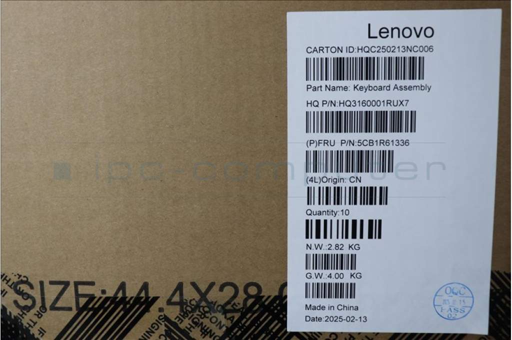 Lenovo 5CB1R61336 C-Cover with keyboard, English, Seashell, Non-FingerPrint, Puresight Logo, US