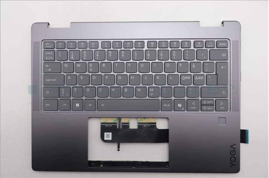 Lenovo 5CB1R61526 C-Cover with keyboard, Norwegian, Luna Grey, FingerPrint, Non-Puresight Logo, UK