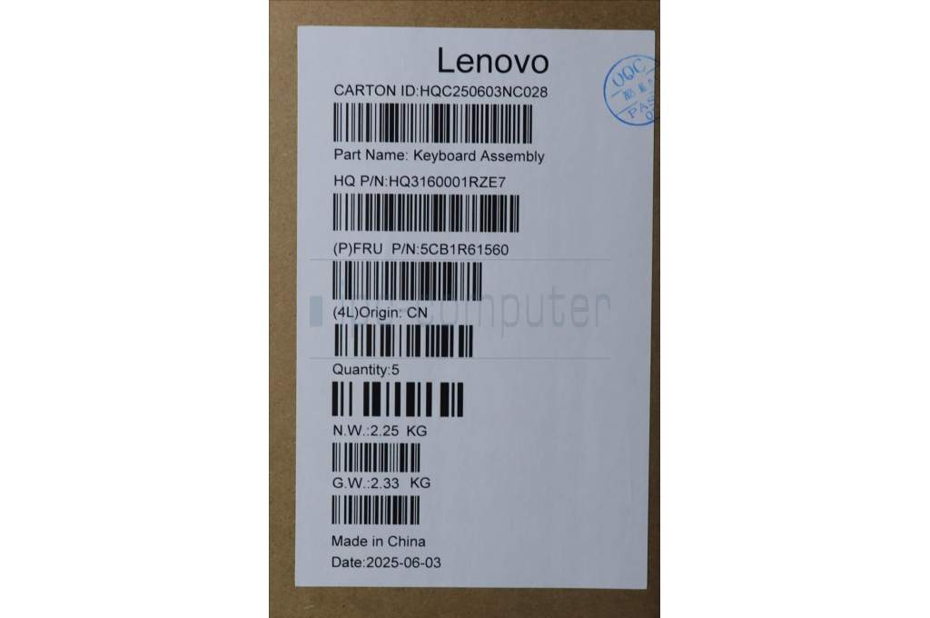 Lenovo 5CB1R61560 C-Cover with keyboard, Spanish, Luna Grey, Non-FingerPrint, Non-Puresight Logo, UK