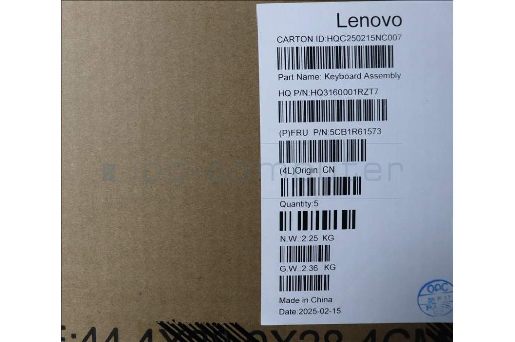 Lenovo 5CB1R61573 C-Cover with keyboard, French, Luna Grey, Non-FingerPrint, Non-Puresight Logo, US