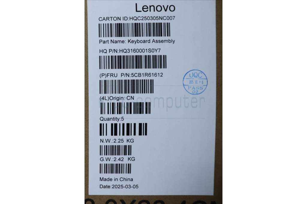 Lenovo 5CB1R61612 C-Cover with keyboard, Hebrew, Seashell, Non-FingerPrint, Non-Puresight Logo, US