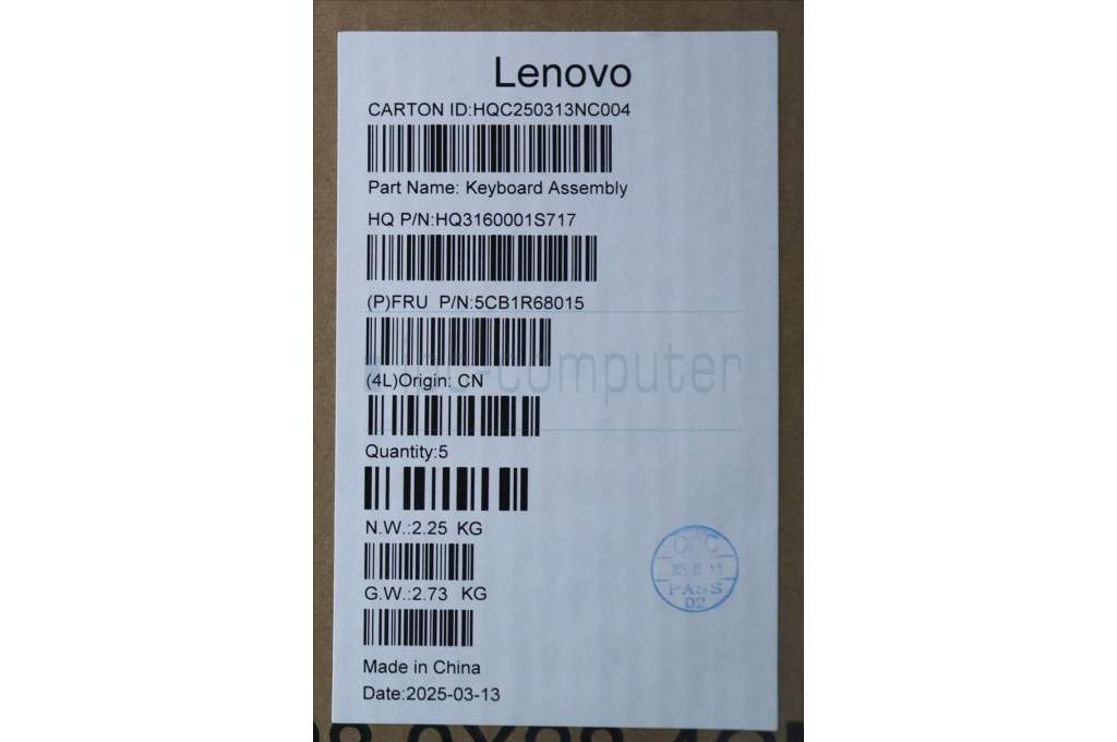Lenovo 5CB1R68015 C-Cover with keyboard, Switzerland, Luna Grey, Puresight Logo, FingerPrint, UK