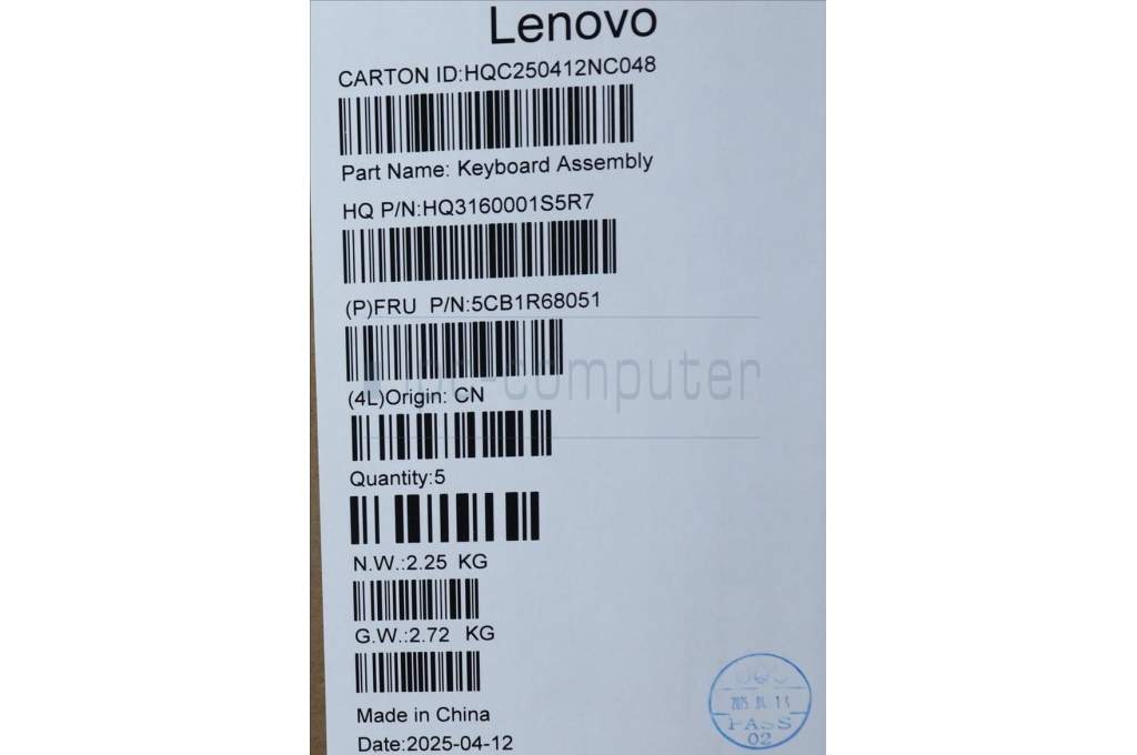 Lenovo 5CB1R68051 C-Cover with keyboard, Italian, Luna Grey, Puresight Logo, Non-FingerPrint, UK