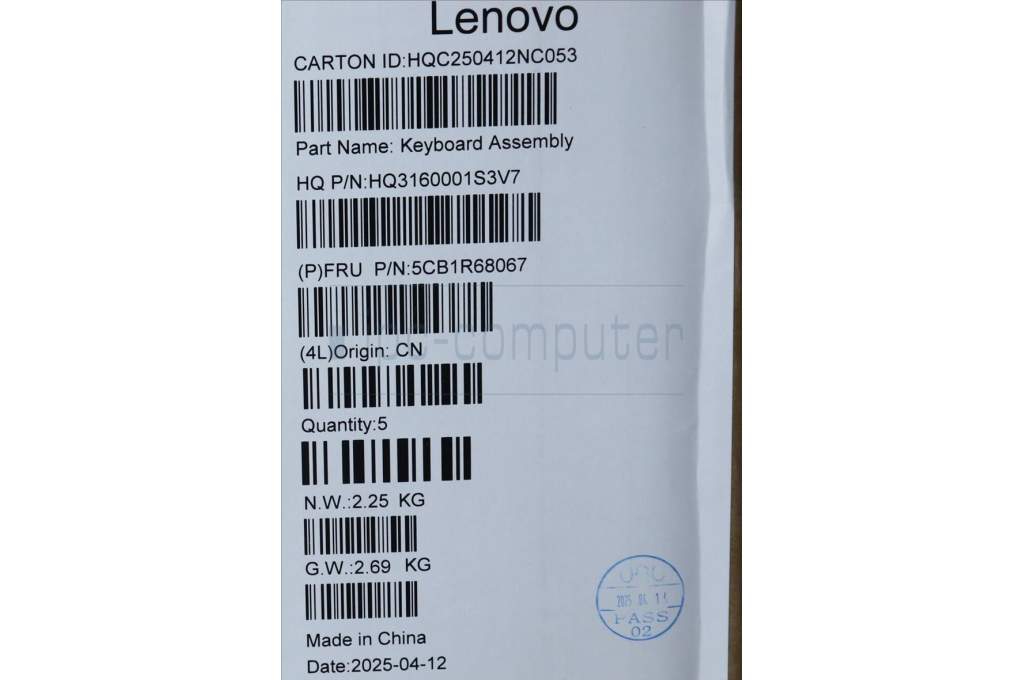 Lenovo 5CB1R68067 C-Cover with keyboard, Portuguese, Luna Grey, Puresight Logo, Non-FingerPrint, UK