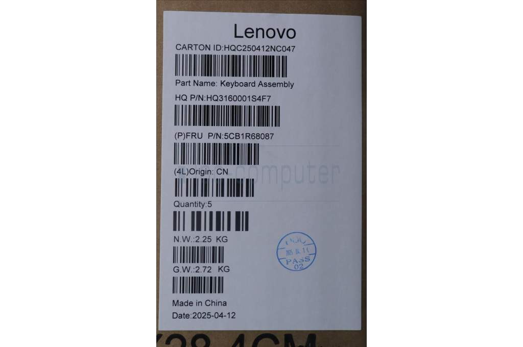 Lenovo 5CB1R68087 C-Cover with keyboard, English, Luna Grey, Puresight Logo, Non-FingerPrint, US