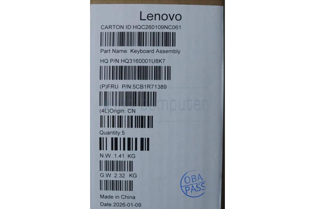Lenovo 5CB1R71389 C-Cover with keyboard, Spanish, Tidal Teal, Non-FingerPrint, Non-Puresight Logo, UK