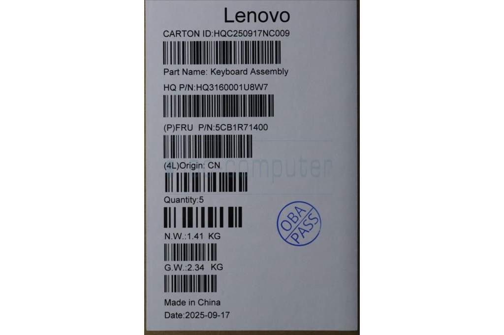 Lenovo 5CB1R71400 C-Cover with keyboard, Belgian, Tidal Teal, Non-FingerPrint, Non-Puresight Logo, UK