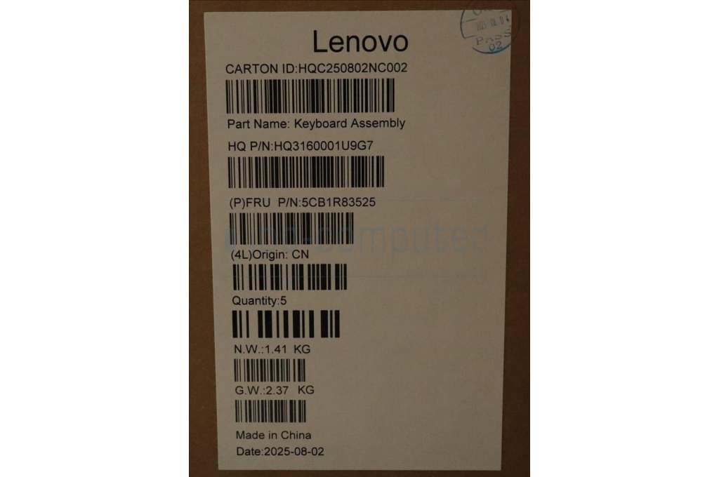 Lenovo 5CB1R83525 C-Cover with keyboard, Switzerland, Seashell, FingerPrint, Non-Puresight Logo, UK